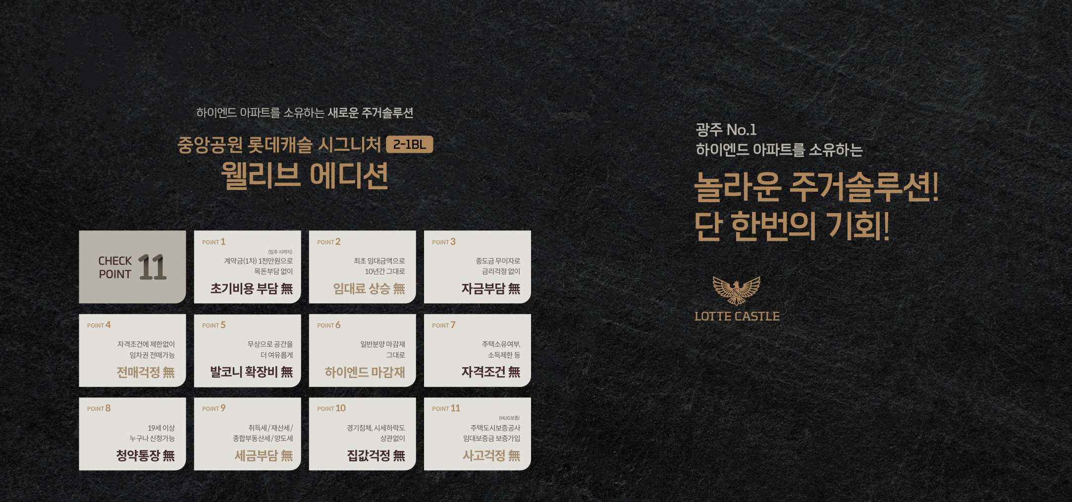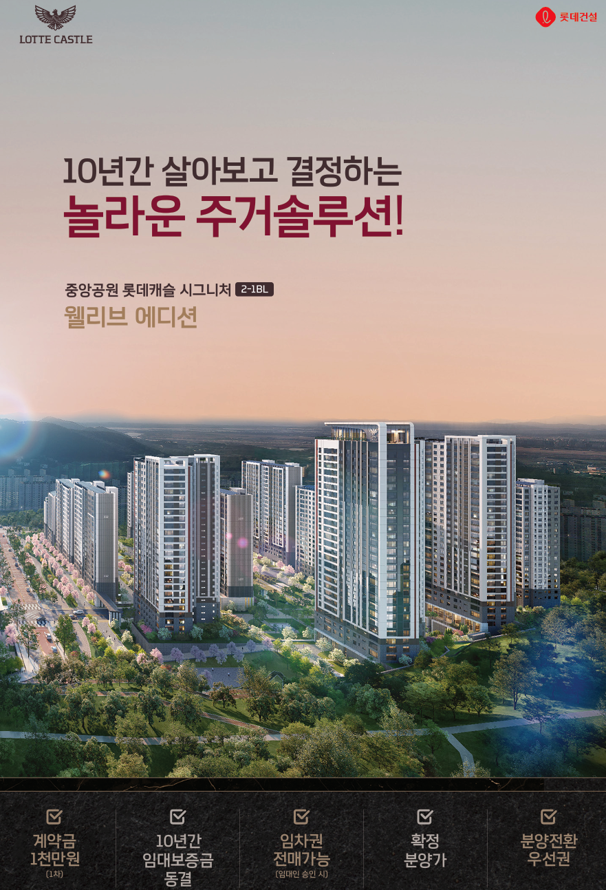 1. 수집하는 개인정보 내용 《중앙공원롯데캐슬전세》 상담, 문의 신청 등을 위해 아래와 같은 개인 정보를 수집하고 있습니다. - 수집항목 : 이름, 휴대전화번호 - 수집방법 : 대표사이트를 통한 수집(관심고객등록, 방문예약 및 상담) 2. 개인정보의 수집 및 이용방법 《중앙공원롯데캐슬전세》 수집한 개인정보를 다음의 목적을 위해 활용합니다. - 분양정보제공, 분양 상담안내, 해당 분양아파트 계약 확인 등 3. 개인정보의 보유 및 이용기간 《중앙공원롯데캐슬전세》 개인정보 수집 및 이용목적이 달성된 후에는 해당 정보를 지체 없이 파기합니다.